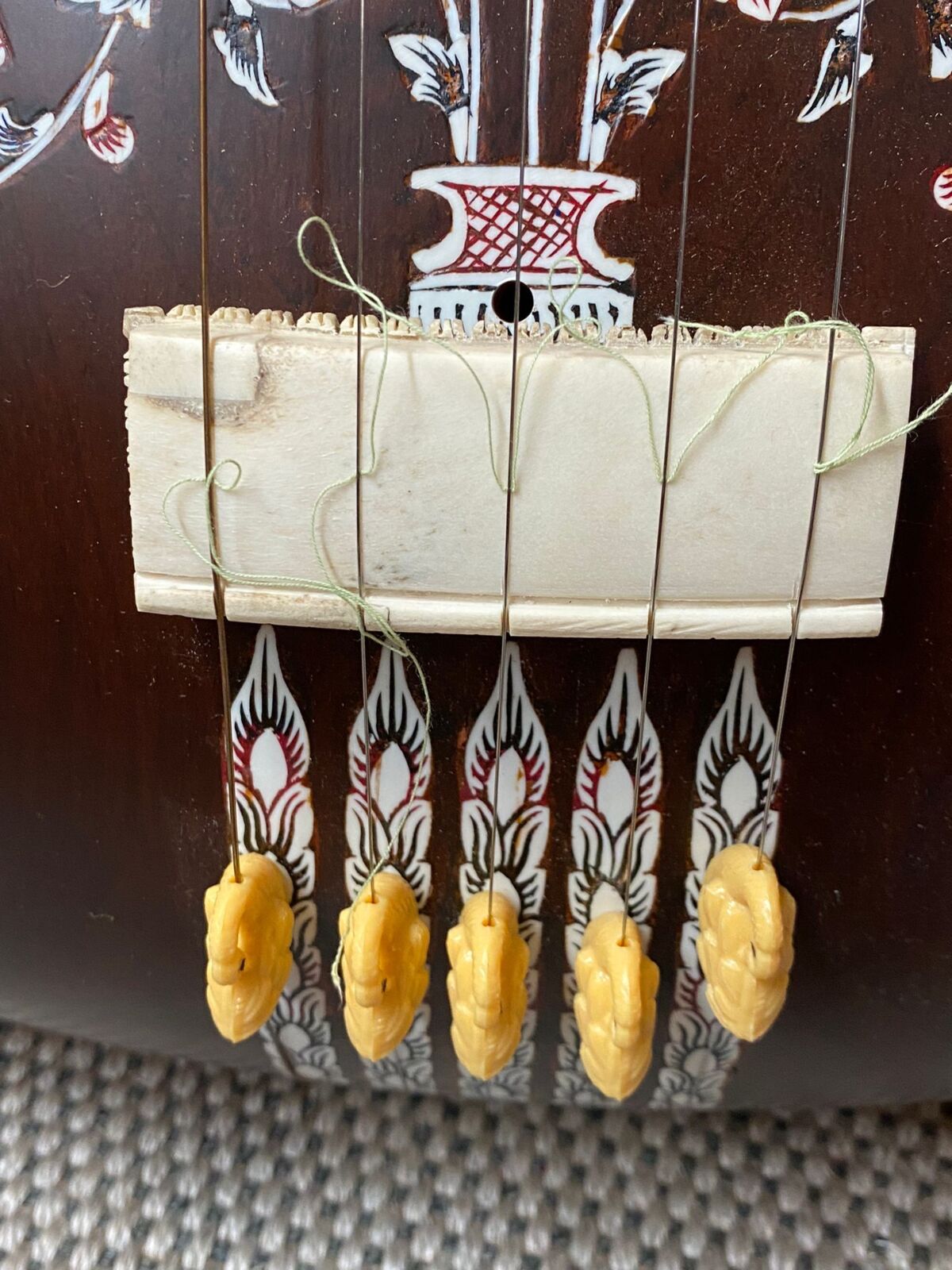 This is a beautiful 5-string male tanpura. Made in Miraj and has a scale length of 104cm. The price includes a travel flightcase.