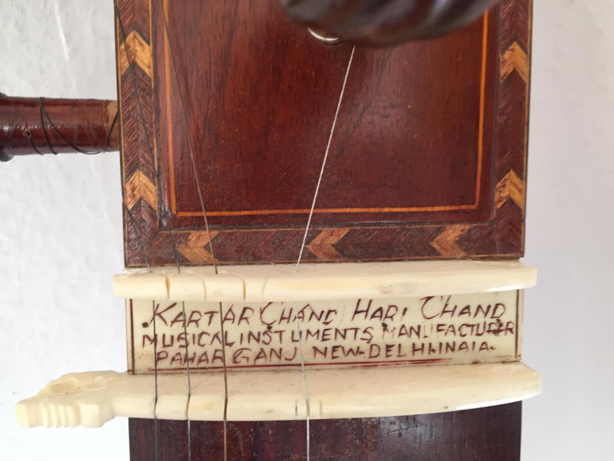 This extremely exquisitely decorated sitar, with wooden inlay edges and incredible tiny carved leaves. Made by Katar and Hari Chand. Wonderfully simple, it has a balanced and warm sound.