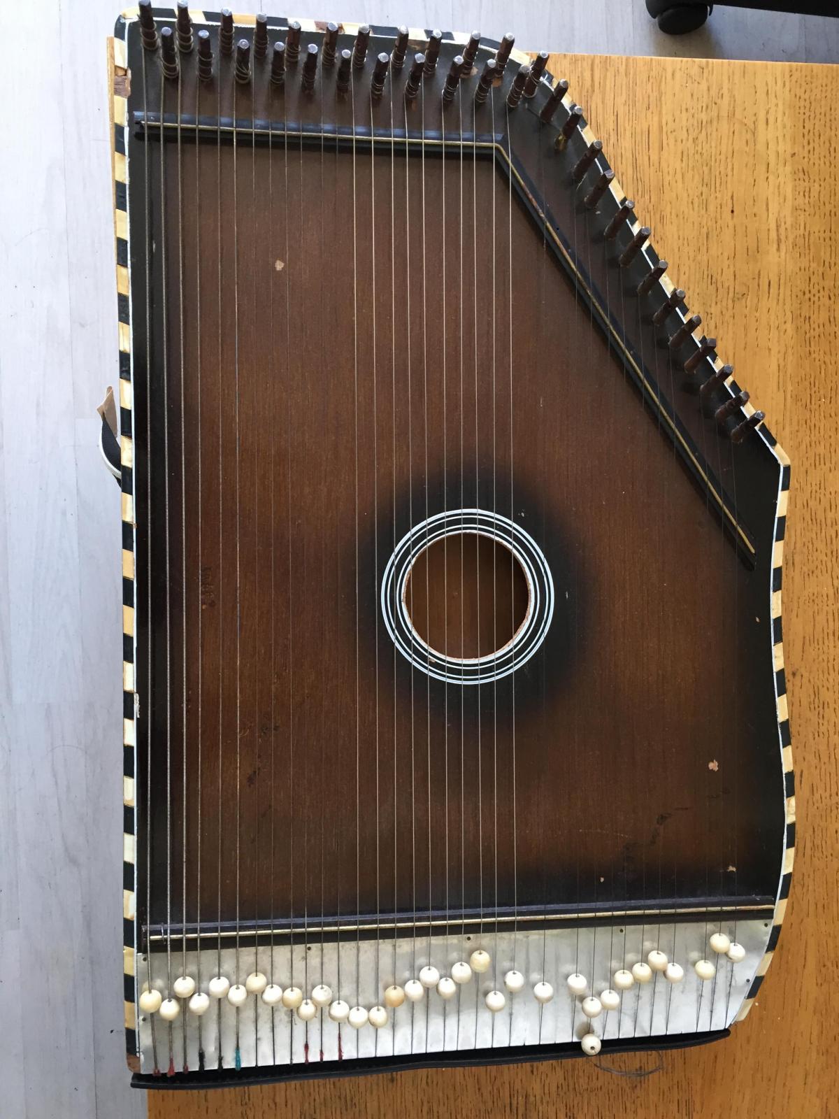 Built by Mondal & sons, his surmandal has a warm sound, and has been well played. This kind of instrument is for accompanying vocal recitals.