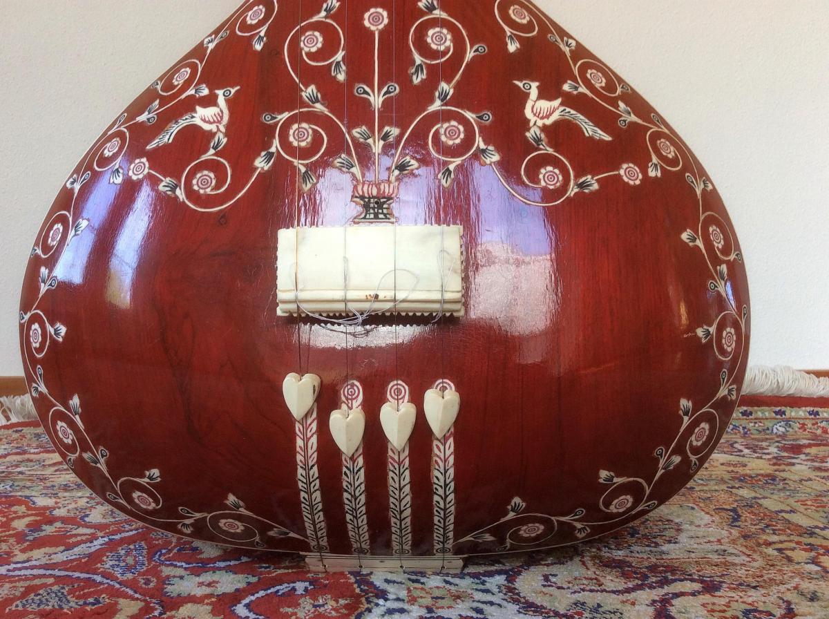 This stunning 14 year old female tanpura was commissioned by Nirmalya Dey too Instrument builder Ahmadsaheb A. from Miraj. With it's beautiful resonance and overtones it is considered a wonderful instrument.