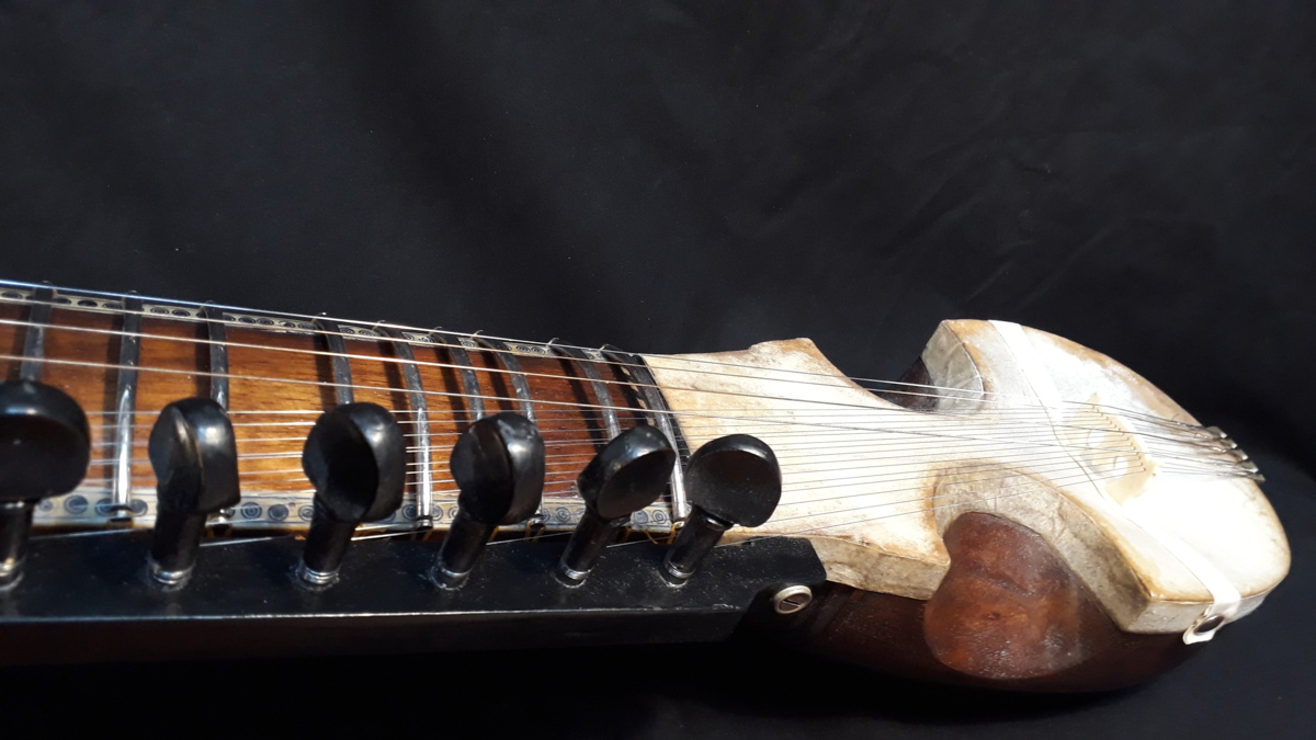 This lovely old vintage esraj from the early 1970s received a renovation in 2021. It has a new skin, new French polish, new strings and the frets were polished and retightened. It has a warm and pure sound.