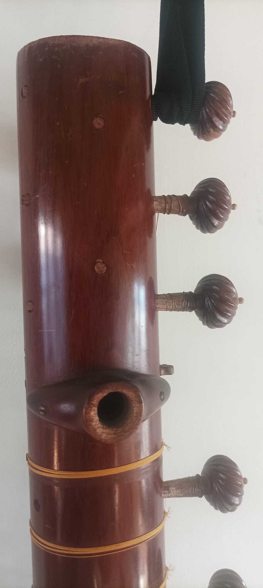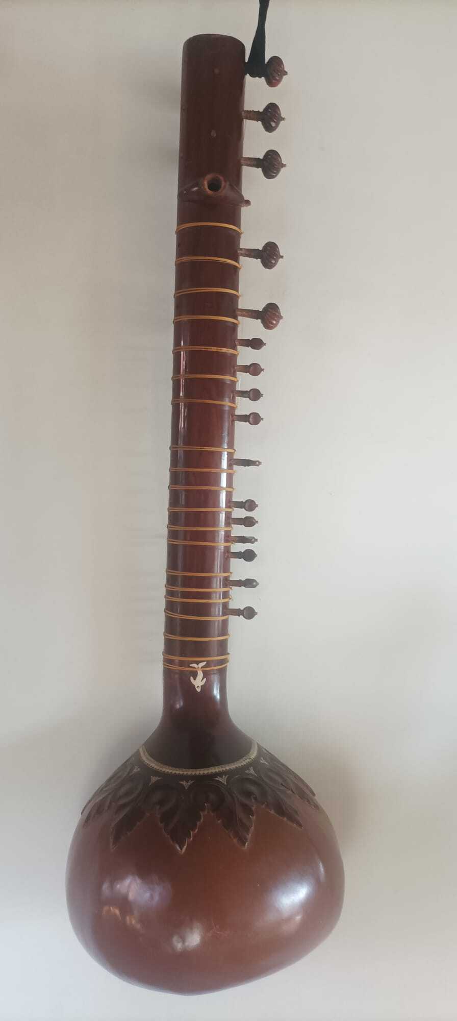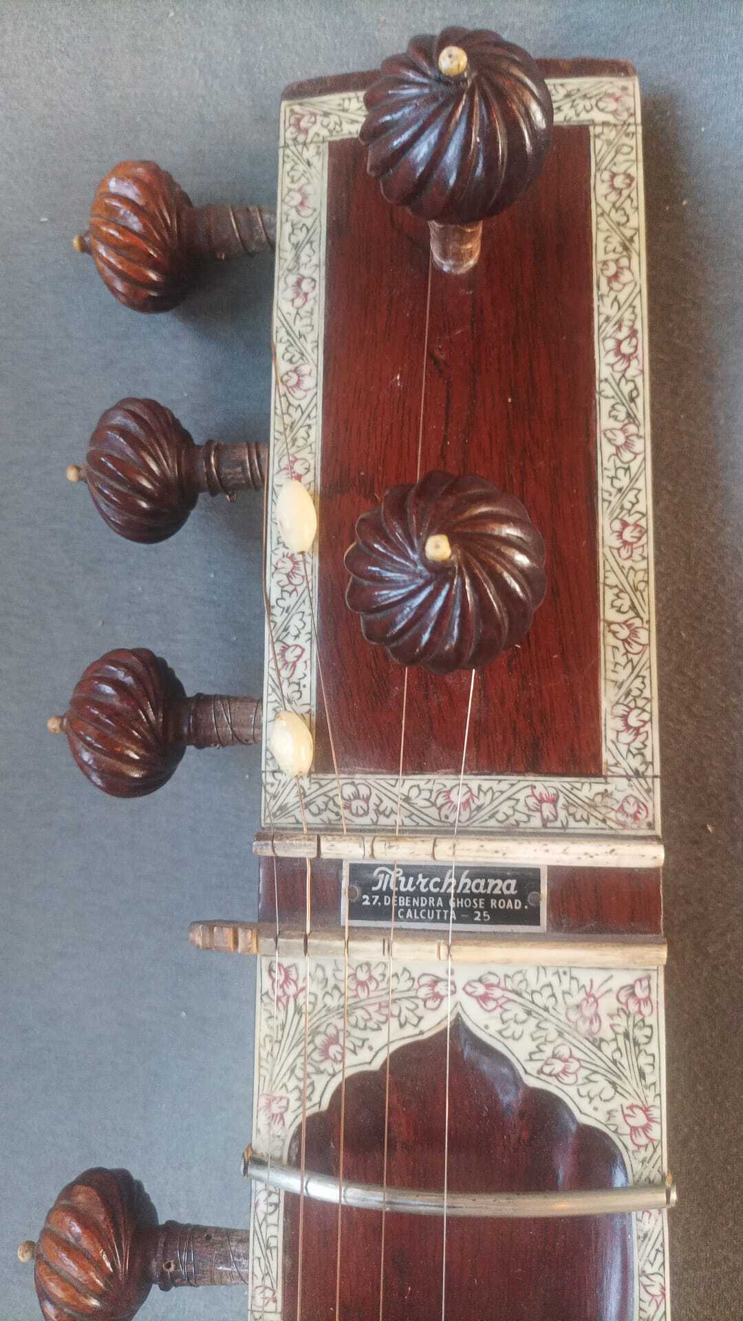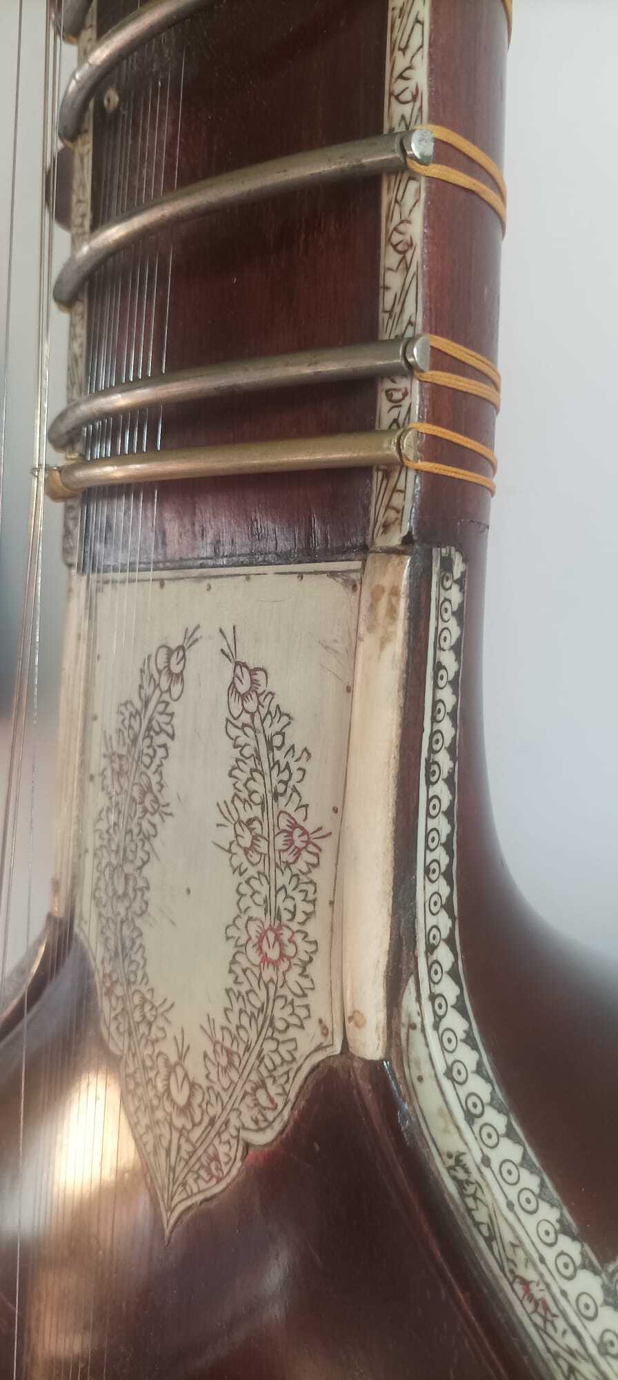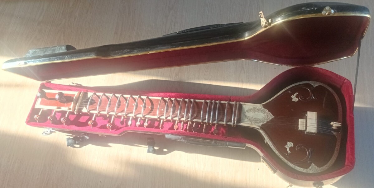 This sitar has character. Built by Murchhana, who was active in the 60s and 70s in Kolkata. He made some top instruments in his time. Currently in C#, with its wonderful warm tone it feels like an old soul that needs a gentle touch.