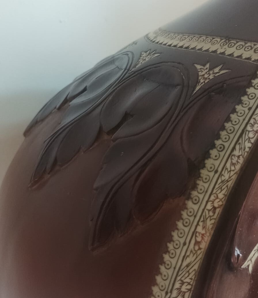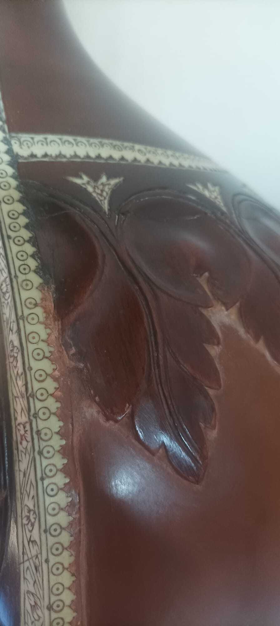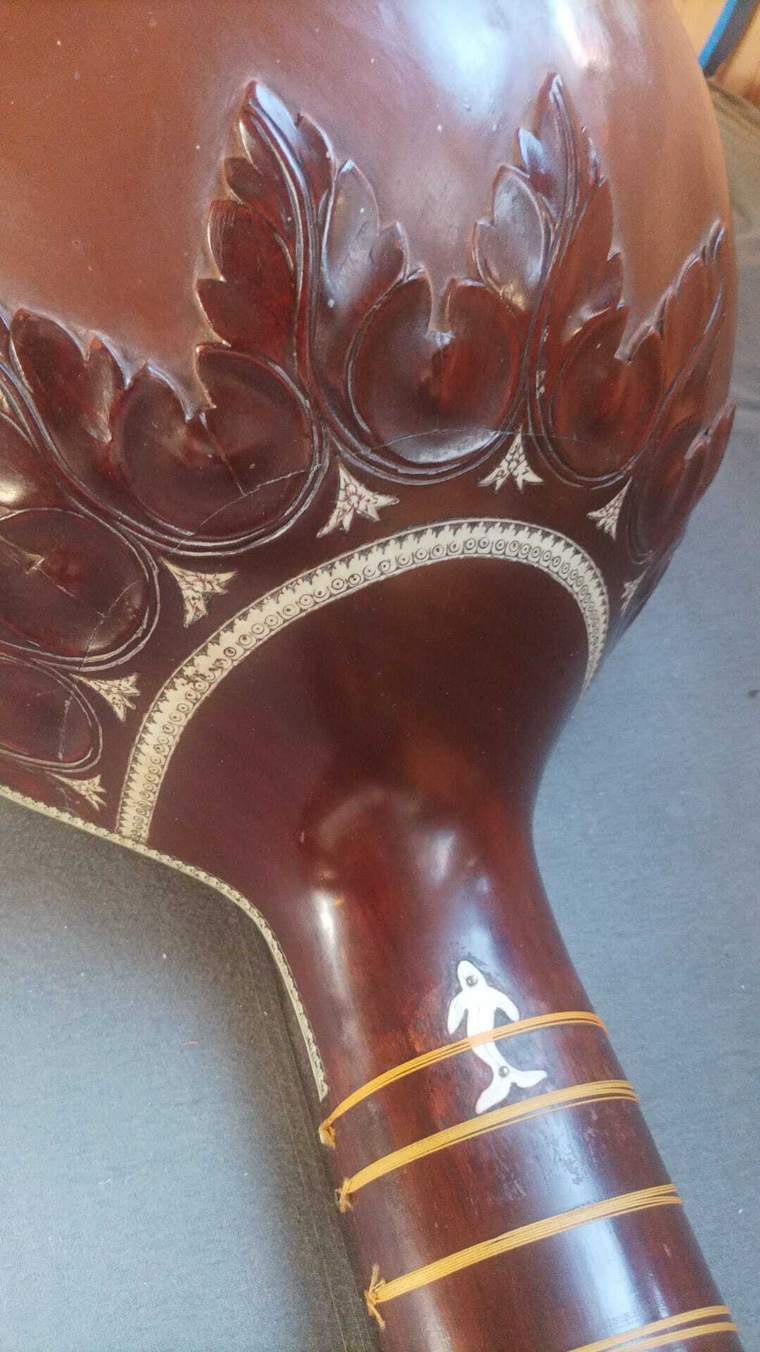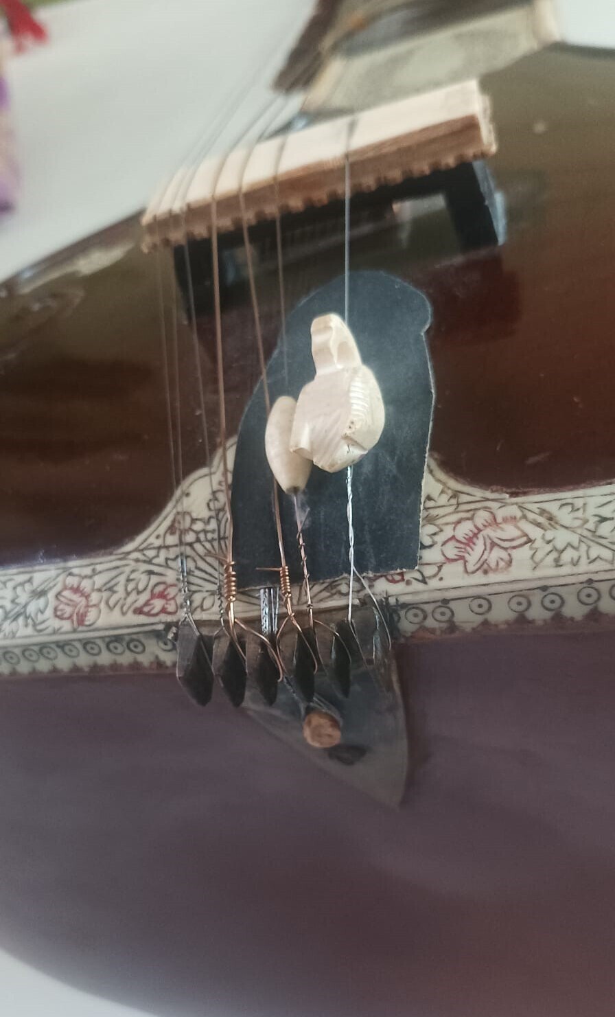This sitar has character. Built by Murchhana, who was active in the 60s and 70s in Kolkata. He made some top instruments in his time. Currently in C#, with its wonderful warm tone it feels like an old soul that needs a gentle touch.