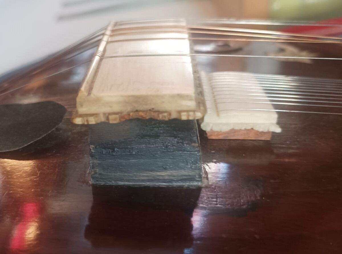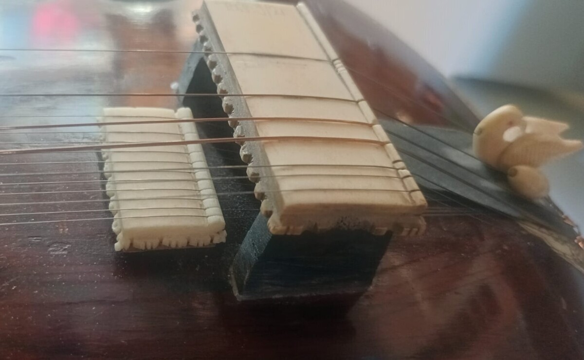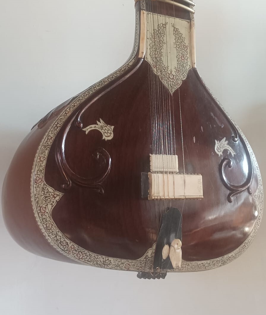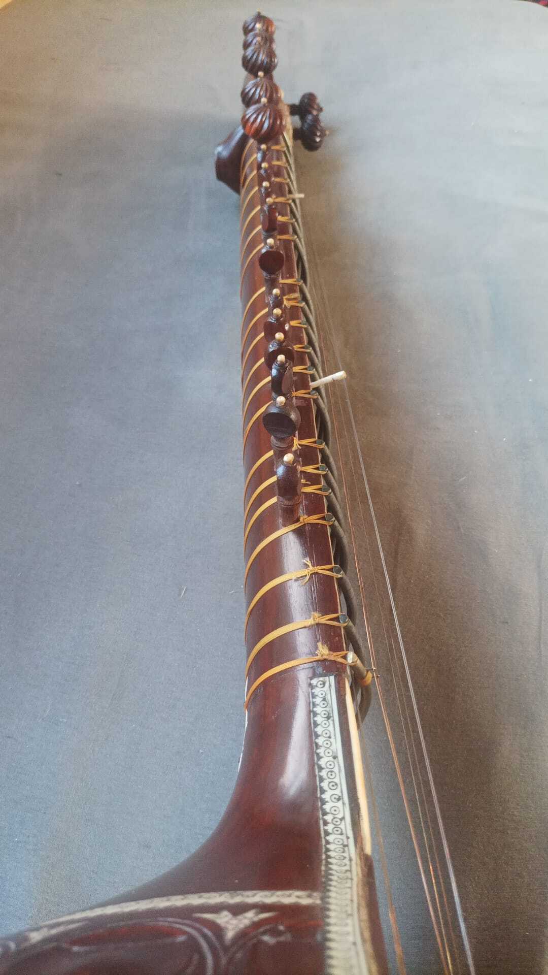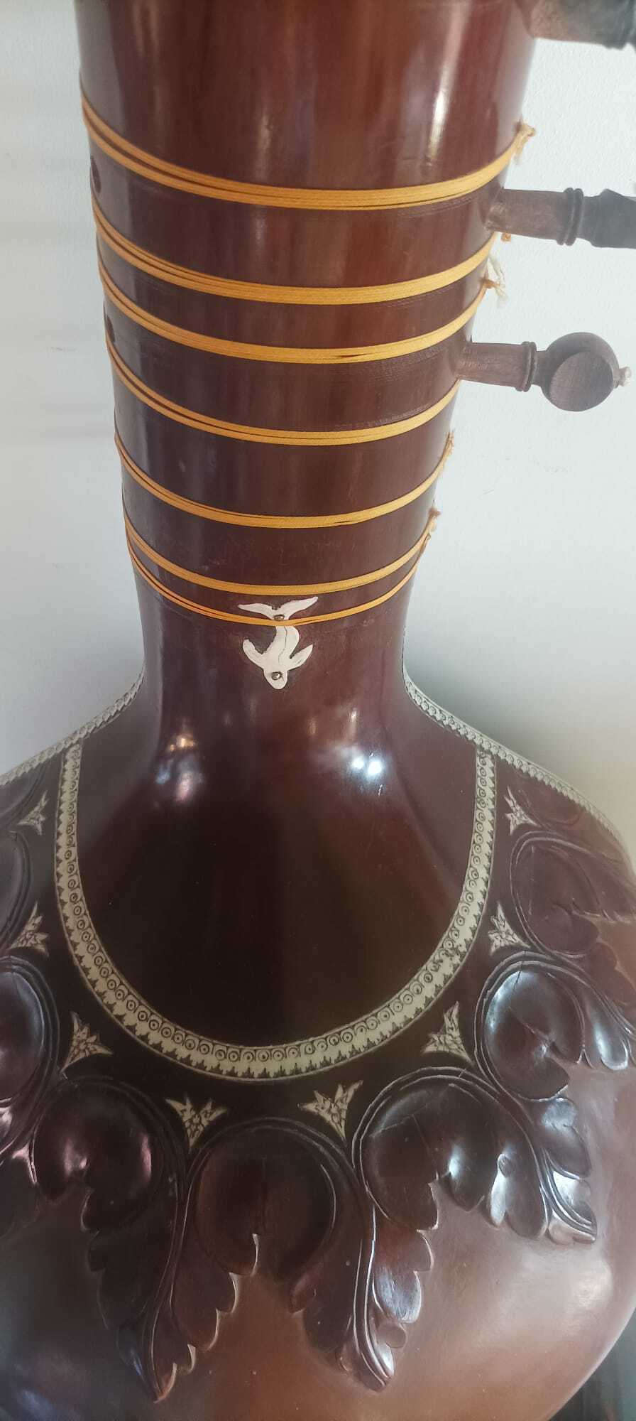 It has a meend range of 4 notes (possibility this can be resolved). It has stable tuning and the chikari sound is excellent. Due to its build, the sitar, is not suitable for tuning up too D.